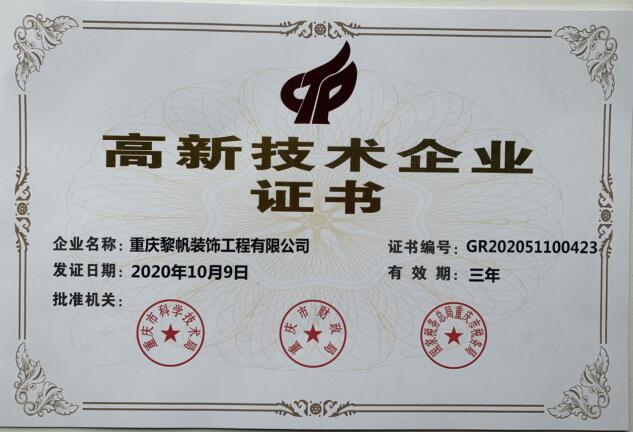 名稱:高新技術企業證書